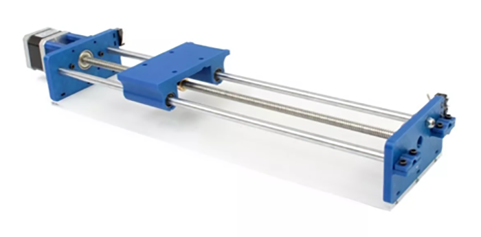 Incluye motor a pasos modelo 17HD4006-22B de 4Kg/cm, finales de carrera en los extremos, chumacera y cople flexible.