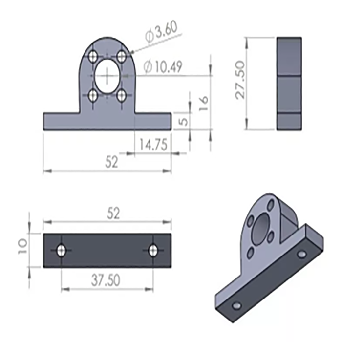 Soporte o Camisa para tuercas de latón usadas en husillos de 8mm, es ideal para acoplar la tuerca del husillo a una superficie plana perpendicular a la misma.